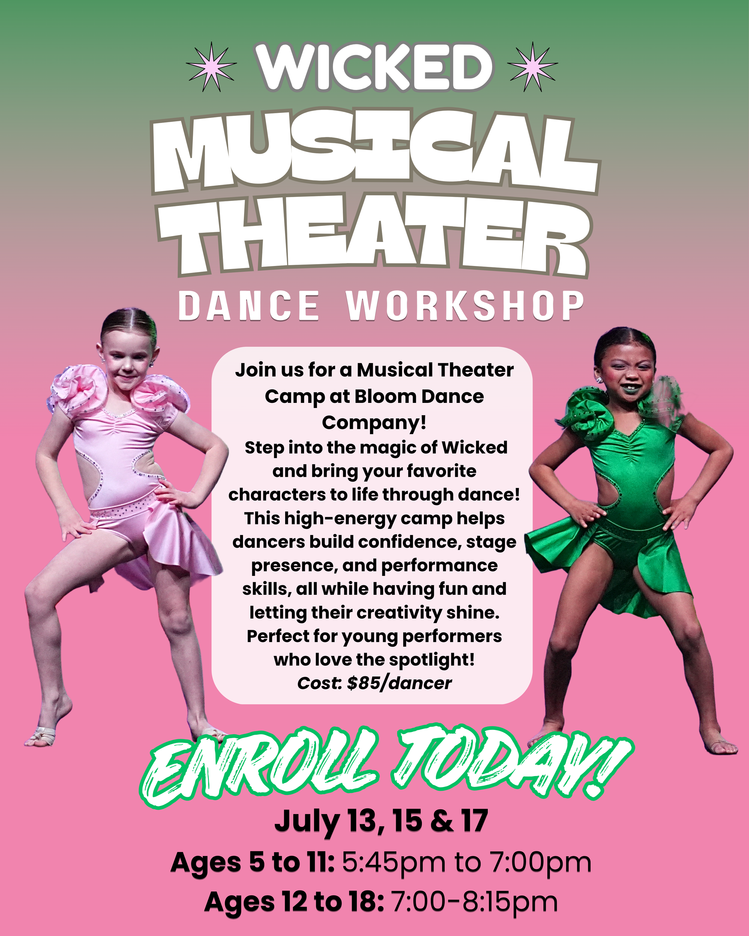🎉 Daily Showcase: Parents are invited to join us for the last 10 minutes of each day to enjoy a special showcase of what their dancer has learned!